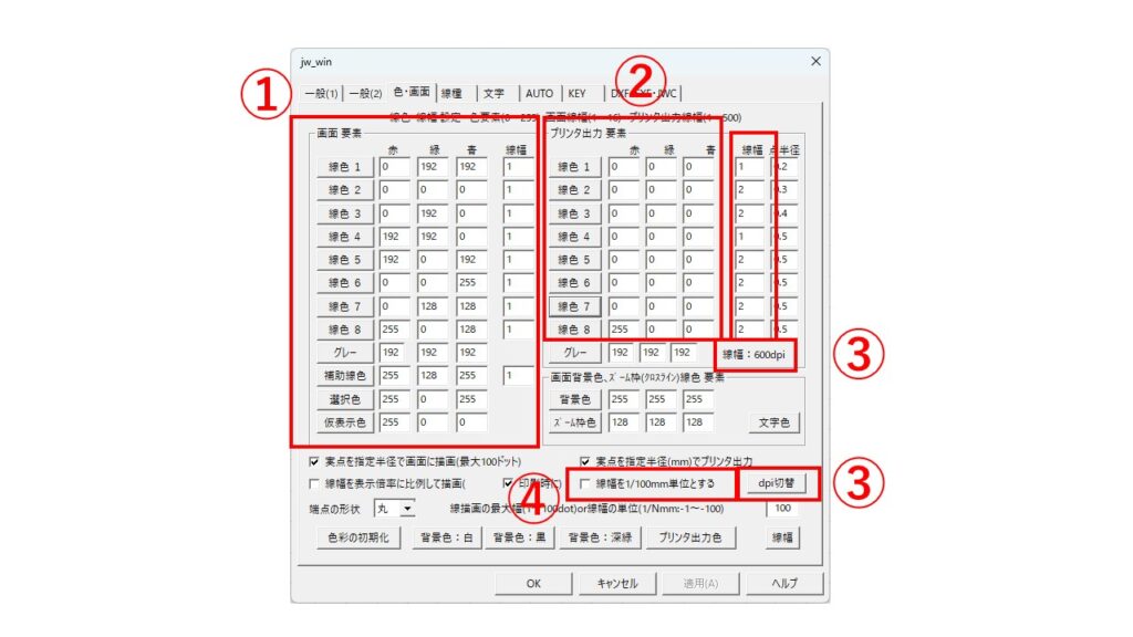 ABCを踏まえて、次にJWCAD私のおすすめの線設定①~④をお伝えします。