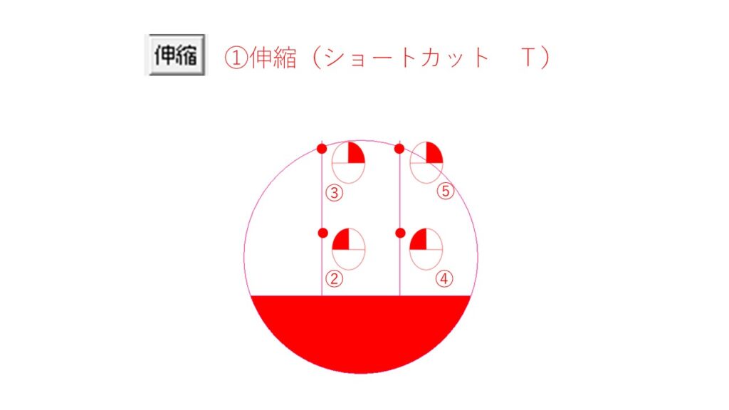 ①伸縮(ショートカットT)