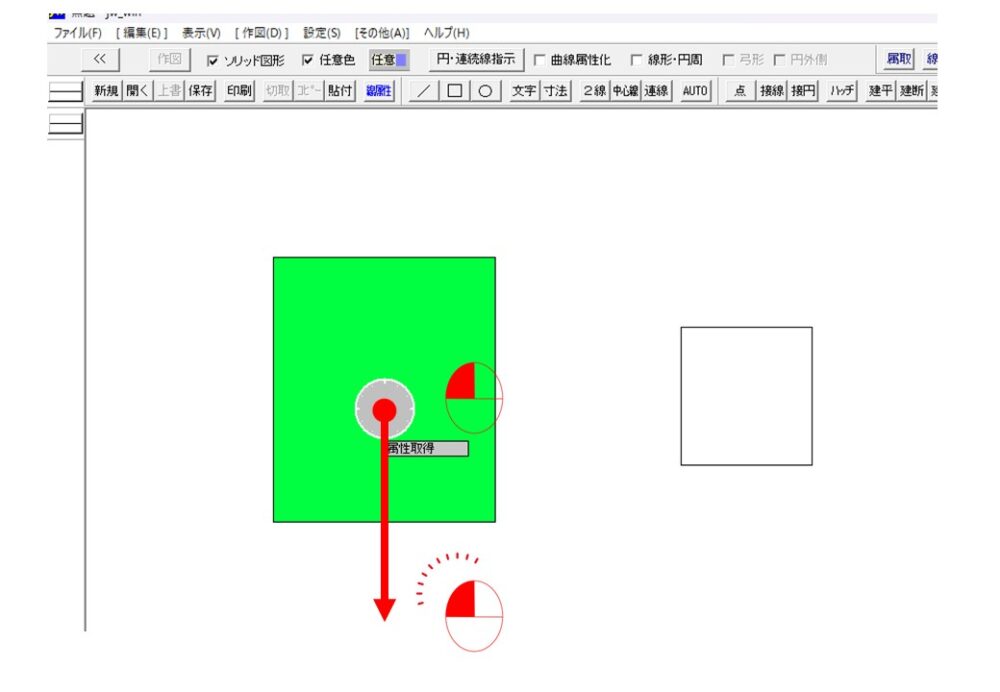 1. 操作手順:左ドラッグ「6時方向」で属性取得