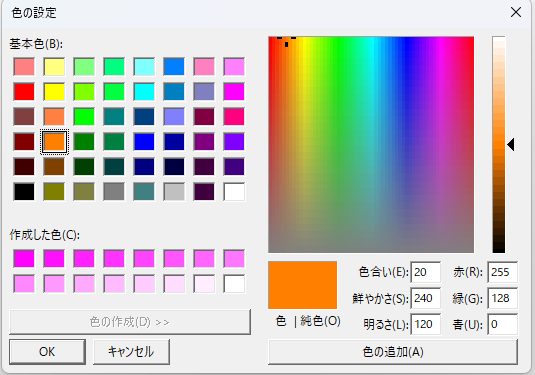 さらに表示された任意色チェック後、「任意■」をクリックし、カラーパレットから新しく設定したい色を選んで「OK」を押します。