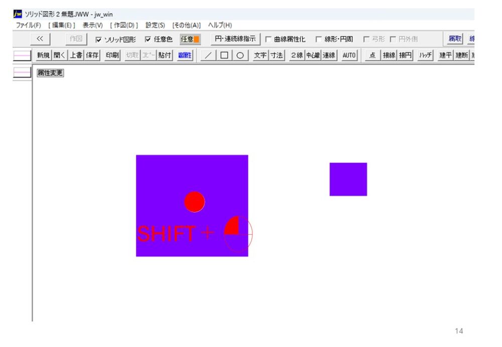 色を変更したいソリッド図形の上にマウスを合わせ、Shift + 左クリック を押します。