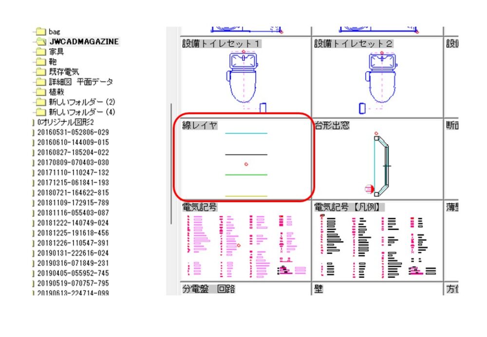 Jw_cadで図形登録したものを貼り付けると、通常は「現在の書き込みレイヤー」にすべての線がまとめられてしまいます。