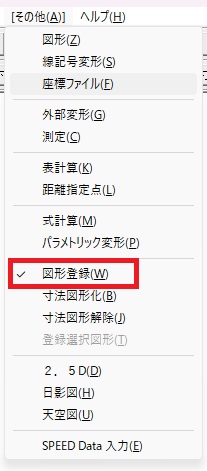 [その他]メニューから[図形登録]を選択します(ショートカットキー Alt+A⇒W)