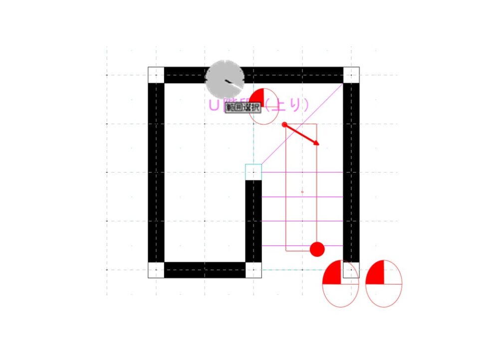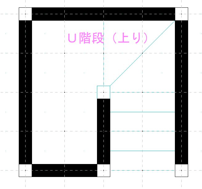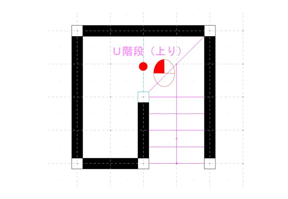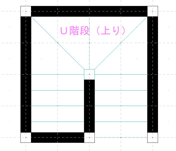 階段の片側(センターラインまで)を通常通り作図します。