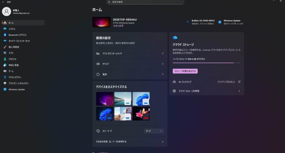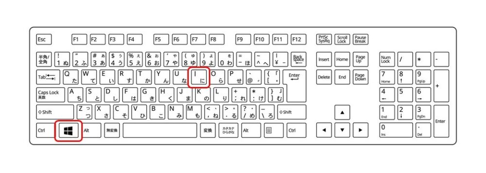 キーボードの [Windowsロゴ] キー + [I] を同時に押し、設定画面を開きます。