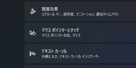 * ポインターのスタイル: 色付きのカーソルに変更できます。