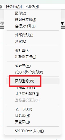 メニューバーの「その他」から「図形登録」をクリックします。